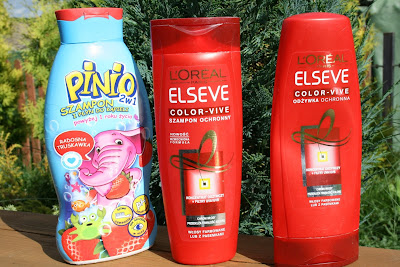 - Elseve Colore – Vive do włosów farbowanych i z pasemkami. Szampon i odżywka, które u mnie sprawdzają się naprawdę przyzwoicie. Jeszcze kiedyś pewnie do nich wrócę. Pełną recenzję możecie zobaczyć tutaj – Elseve Color – Vive ochrona włosów farbowanych i z pasemkami.